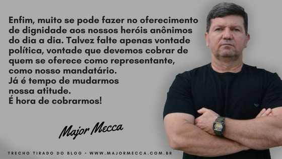 Enfim, muito se pode fazer no oferecimento de dignidade aos nossos heróis anônimos do dia a dia. Talvez falte apenas vontade política, vontade que devemos cobrar de quem se oferece como representante, como nosso mandatário.
